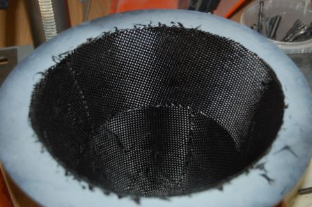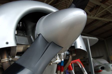 Die Spinnerkappe wird aus CFK laminiert, um eine möglichst geringe rotierende Masse zu haben.